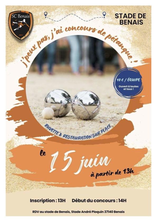 LE SPORTING CLUB DE FOOTBALL ORGANISE SON CONCOURS DE PÉTANQUE AU STADE DE BENAIS SAMEDI 15 JUIN