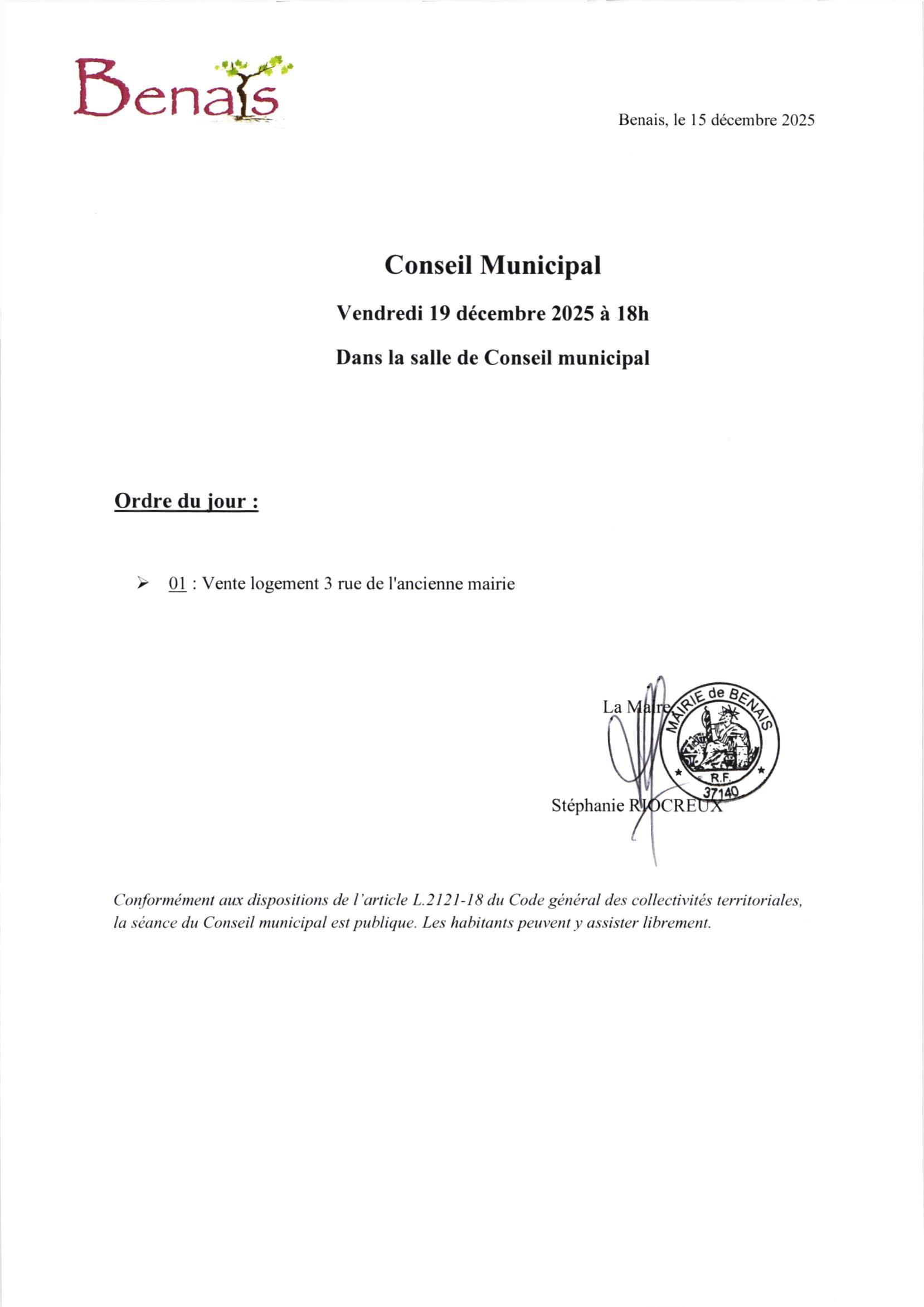 Conseil municipal du 19 décembre 2025