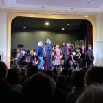 Le public est venu très nombreux assister au beau concert du Nouvel An de l’Harmonie Benais/La Chapelle-sur-Loire qui accueillait la musique de Mehun-sur-Yèvre. Tous ont réservé une jolie surprise au Chef Michaël Auclert qui s’est vu décerner la « médaille des vingt années de direction » des mains de Nelly Benon. L’occasion pour le nouveau Président de l’Harmonie, Guillaume Vincendeau de retracer le parcours de Michaël Auclert depuis son arrivée en 2012, de le remercier de son engagement à travers toutes les expériences musicales et collectives qu’il a su si bien orchestrer dans nos communes et bien au-delà. Les deux municipalités se sont jointes à l’association de l’Harmonie et à l’ensemble des musiciens pour remercier Michaël de son investissement au quotidien qui permet de faire de l’apprentissage et de la pratique musicale en milieu rural une si belle réussite depuis tant d’années.