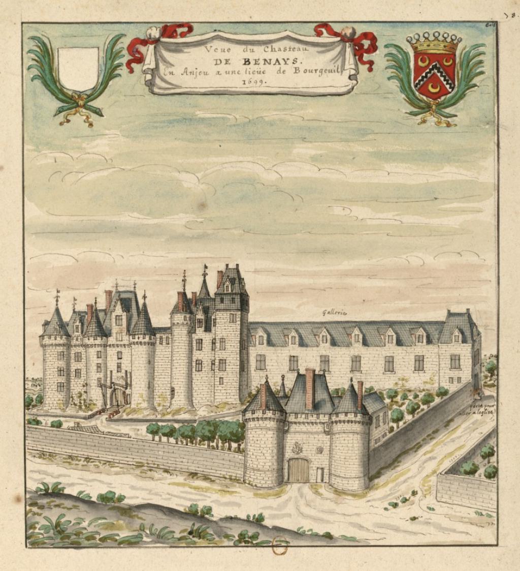 Aujourd’hui définitivement fermé à la visite, le château de Benais prend place au cœur de l’Indre-et-Loire. Inscrit aux Monuments Historiques, l’imposant château de Benais est mentionné dès le XIIIe siècle. En 1532, François 1er est reçu par Gilles de Laval. Partiellement détruit bien avant la révolution française, le château a conservé ses communs et les deux tours de son entrée fortifiée ( formant le châtelet ). L’ensemble a été intégré au nouvel édifice, érigé au XIX e siècle. L’un des tableaux conservés au château, réalisé à la gouache, présente l’état de l’édifice avant sa destruction.
