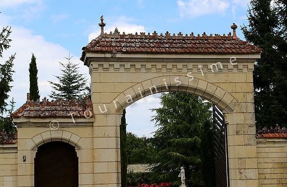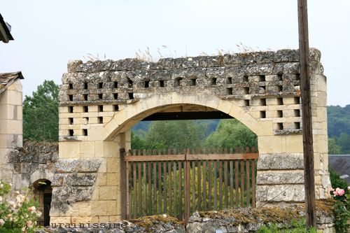 Portail en tuffeau et en brique du XIXe siècle, face à l’entrée du château.